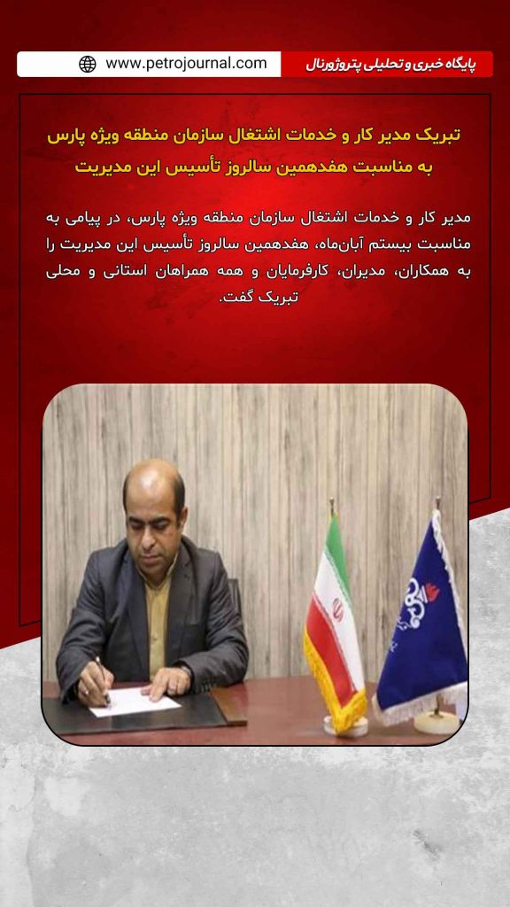 در پیام مدبر کار و خدمات اشتغال سازمان منطقه ویژه پارس آمده است: